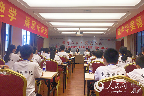 人民网重庆8月19日电 19日,在共青团重庆市委的大力支持下,由新华信托股份有限公司、重庆明天公益基金会、重庆国学院和重庆市青少年发展基金会联合开展的第二期“国学经典·薪火传承”扶贫助学公益项目暨“国学公益夏令营”开营仪式在西南大学桂圆宾馆举行。
