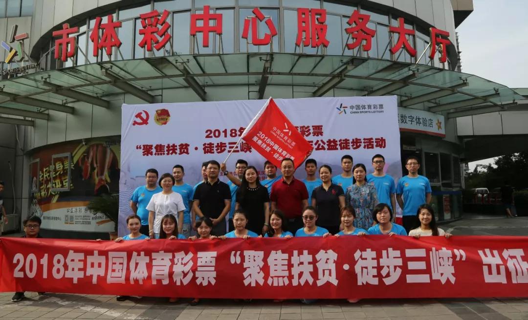 2018年9月5日上午,2018年中国体育彩票“聚焦扶贫•徒步三峡”团员青年公益徒步活动出征仪式在市体彩中心服务大厅举行。共青团重庆市委党组成员、副书记叶力娜,团市委发展与权益维护部部长刘文洋,重庆市体育彩票管理中心主任张小波,重庆市青少年发展基金会副秘书长沈琪,重庆市体育彩票管理中心工会主席何毅等相关领导出席了本次仪式。