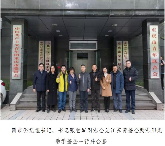 江苏青基会励志阳光助学基金一行在渝期间,重庆团市委党组书记、书记张继军同志,团市委党组成员、副书记叶力娜同志与江苏青基会励志阳光助学基金一行,就助力脱贫攻坚等方面深入交流。