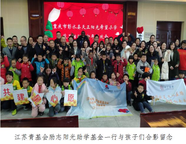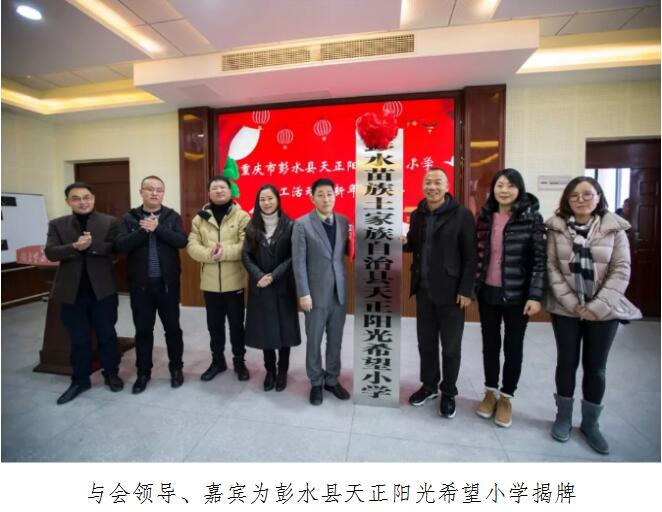 2019年1月3日,由重庆青基会、江苏青基会励志阳光助学基金捐资30万元援建的彭水县天正阳光希望小学揭牌仪式在彭水第四小学圆满举行。