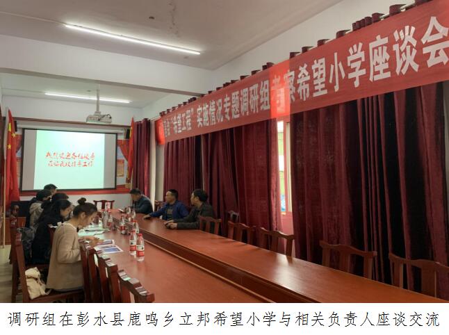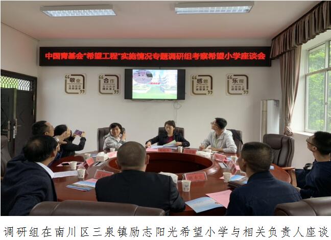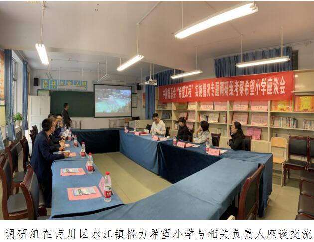 在希望工程30周年即将到来之际,为全面准确掌握希望小学建设使用和学生资助“10万+”任务落实情况,深化品牌管理,加强风险防控,研究制定希望工程下一步发展规划,由中国青基会卫生健康事业部部长助理苑晓玲、综合办公室项目官员马晓蓉、教师发展事业部高级助理左少华3人组成的中国青基会调研组一行到重庆市调研希望工程实施情况。