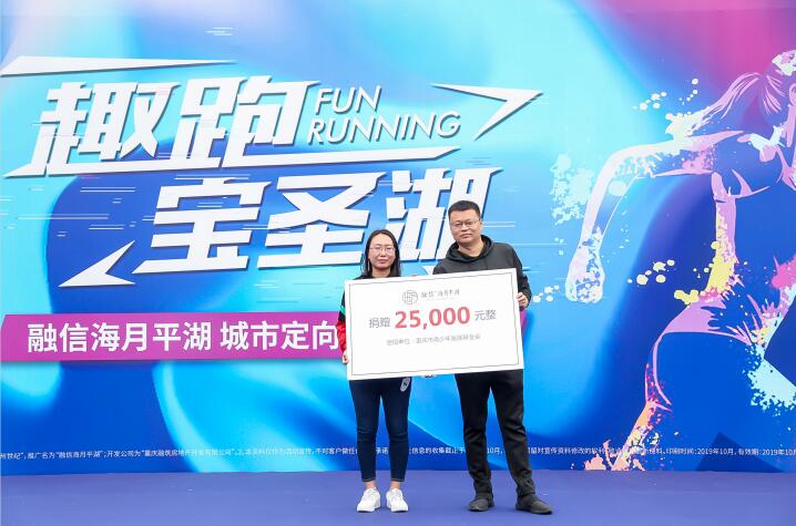 启动仪式中,融信·海月平湖向重庆市青少年发展基金会捐款25000元,所捐款项将全部用于重庆市青少年公益事业发展,每名完成挑战赛的选手,融信·海月平湖即代表参赛者向重庆市青少年发展基金会捐款50元,活动现场进行了公益捐赠仪式,曾凯同志向企业颁发了爱心证书。