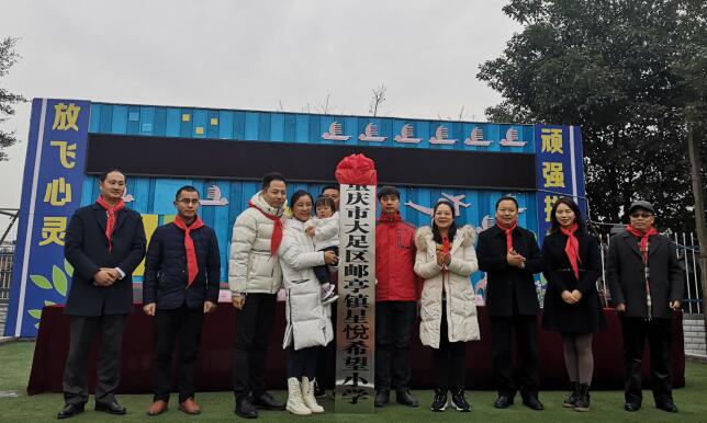 随后,重庆青基会执行秘书长沈琪为重庆新骄阳健康产业股份有限公司颁发爱心证书,与会嘉宾共同为“星悦希望小学”揭牌。
